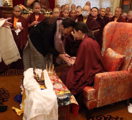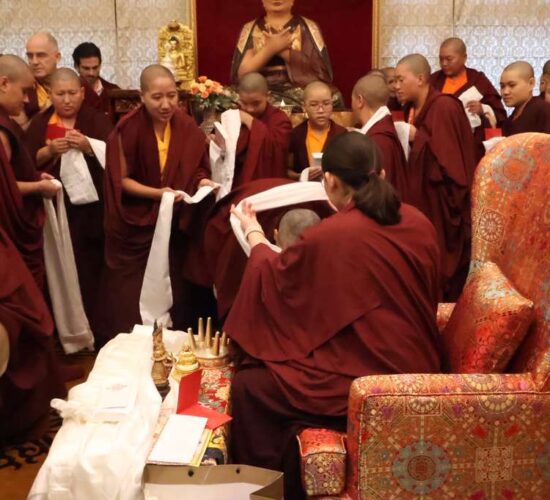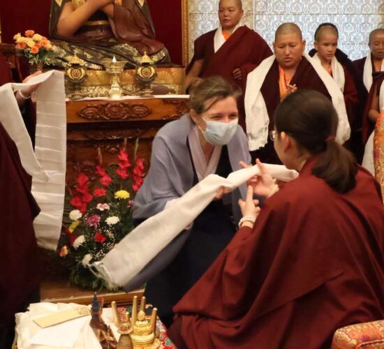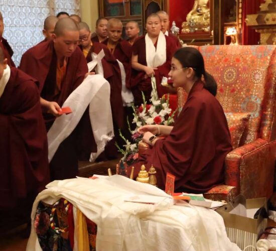 In diesen Tagen in Mindrolling, erfüllt vom Segen Kyabje Shechen Rabjam Rinpoches, der die Kama-Übertragungen verleiht, freuten sich alle Sangha-Mitglieder*innen über diesen glücklichen Anlass und waren von den herausragenden Qualitäten von Jetsün Rinpoche tief bewegt, im Wissen, dass Rinpoche weiterhin studiert, praktiziert und alle notwendigen Übertragungen empfängt, um die Mindrolling-Linie für die Zukunft vollständig zu bewahren. Für alle Anwesenden war es eine große Freude zu sehen, dass Jetsün Rinpoche zweifellos das Licht der Weisheit für die nächste Generation von Praktizierenden tragen wird, die den authentischen Dharma suchen.