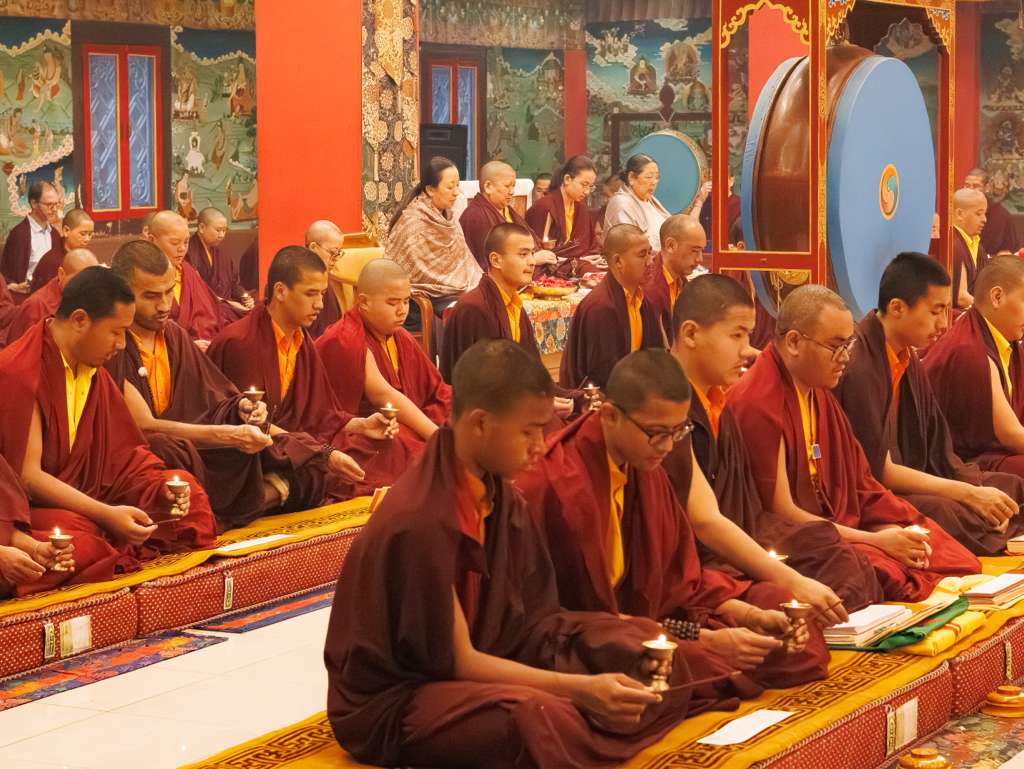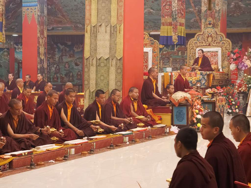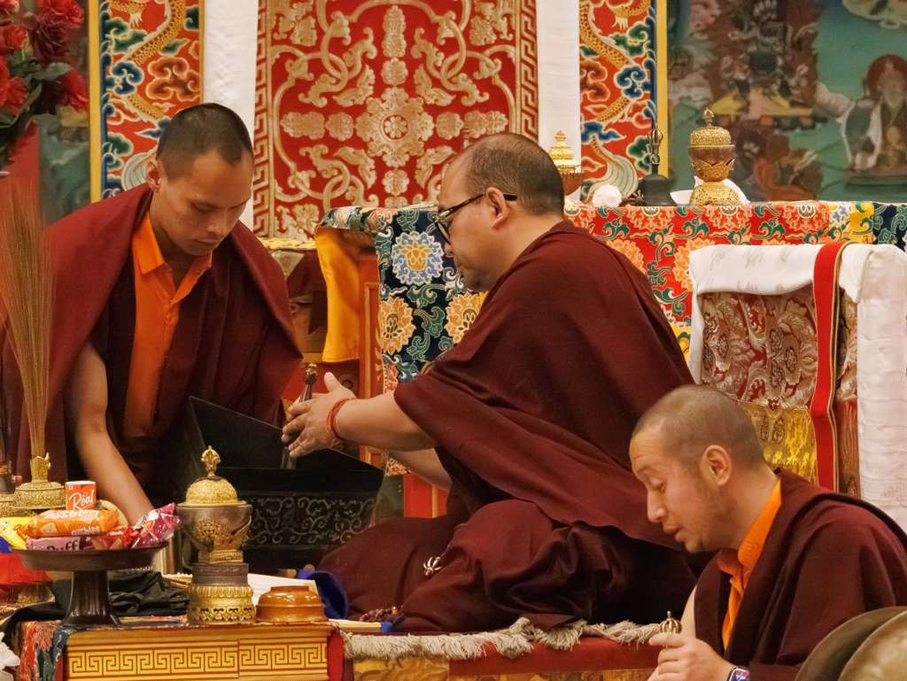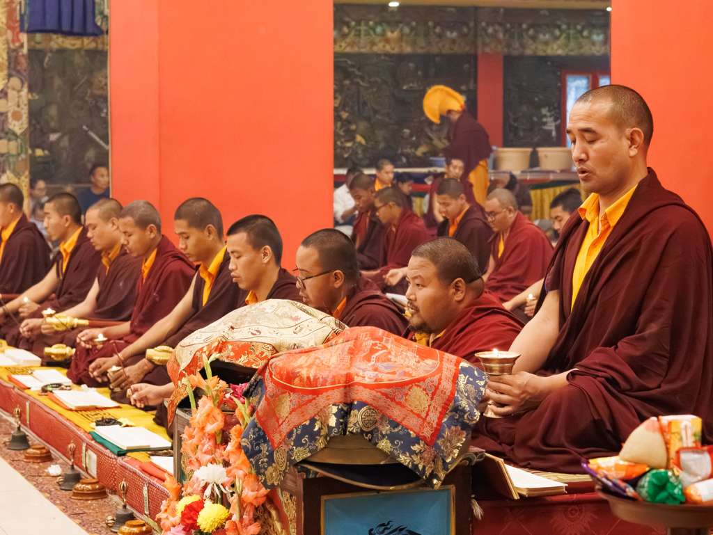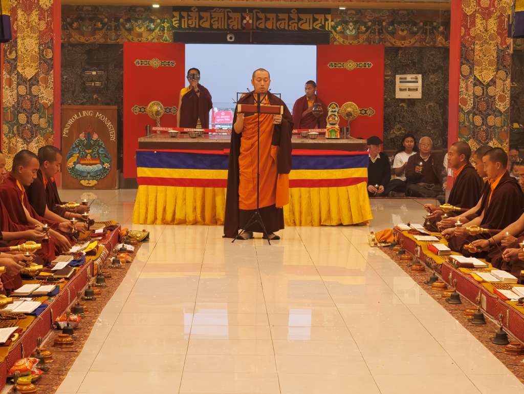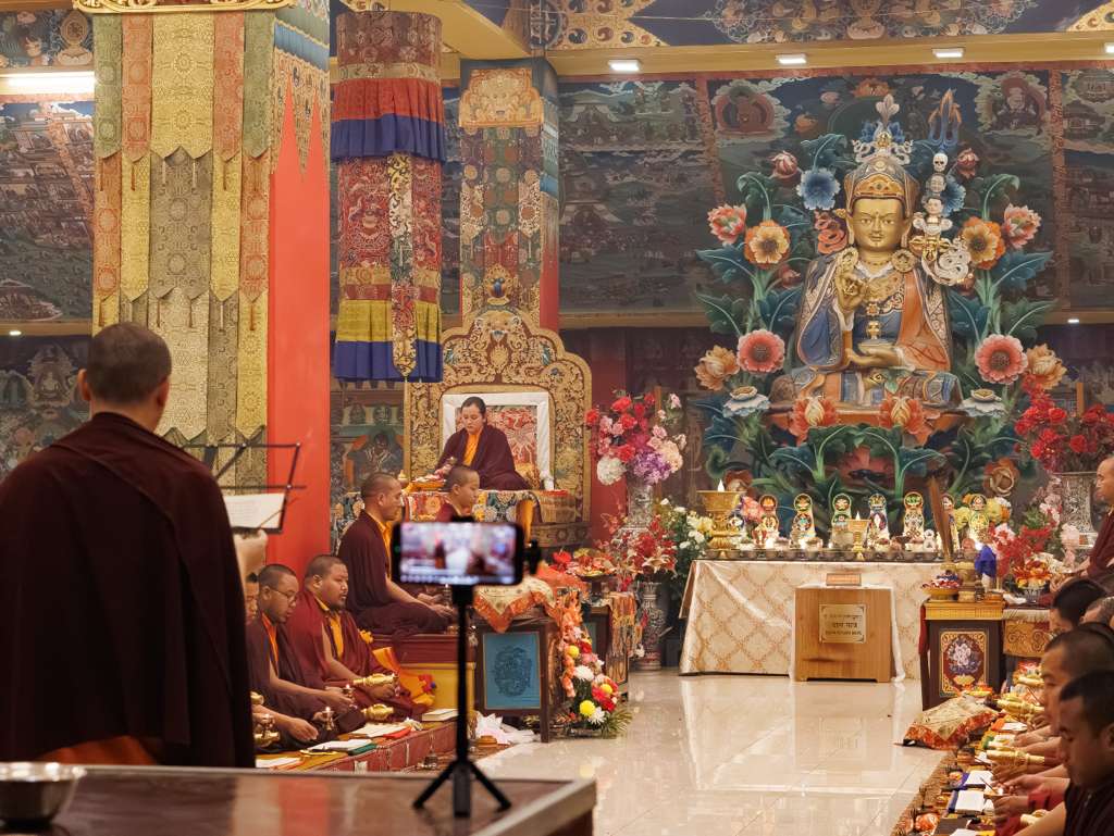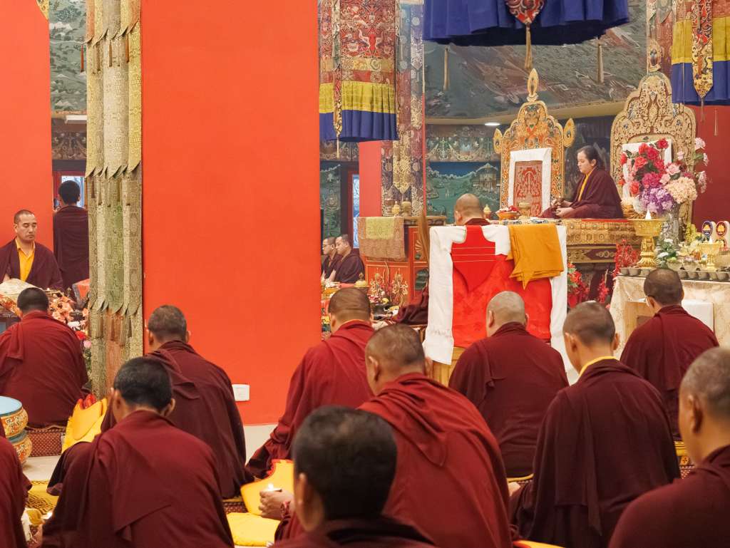 Der Segen der Linie war deutlich spürbar, als die diesjährige Praxis von Kyabje Minling Dungse Rinpoche, dem 13. Thronhalter von Mindrolling, geleitet wurde, der seinen Platz auf dem Thron einnahm. Dieser äußerst glückverheißende Anlass wurde zudem durch die Anwesenheit von Kyabje Minling Jetsün Rinpoche, Kyabje Minling Jetsün Khandro Rinpoche, Kyabje Trulshig Yangsi Rinpoche, dem Dorje Lopön Khentrul Marpa Rinpoche sowie Minling Umdze Lodrö Gyaltsen und vielen weiteren Rinpoches, Tulkus, Khenpos sowie Mönchen, Nonnen und Laienpraktizierenden aus aller Welt gesegnet.