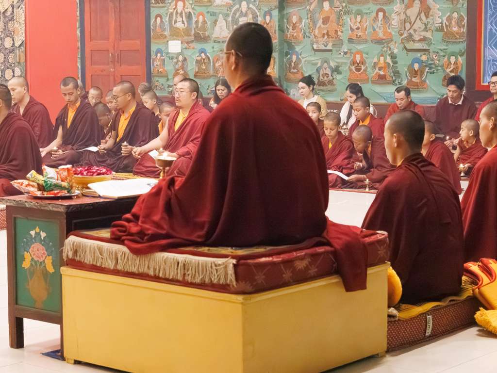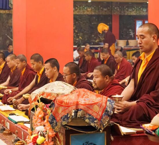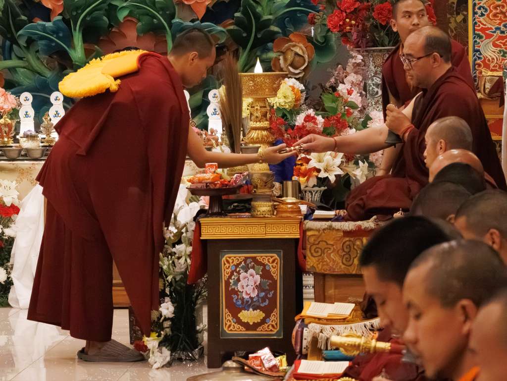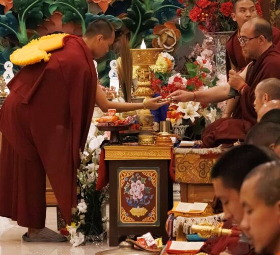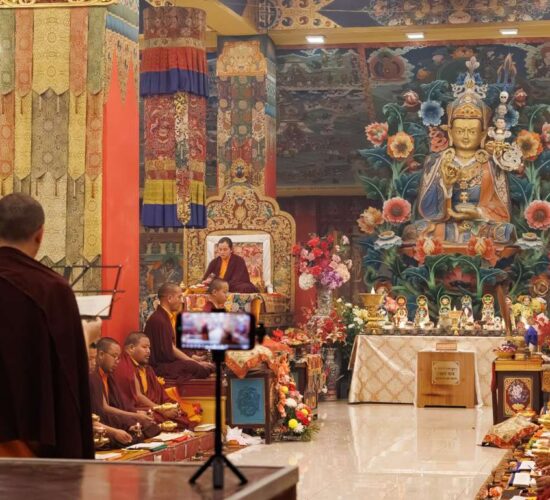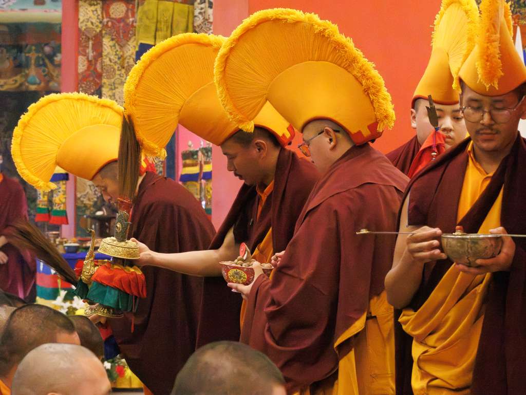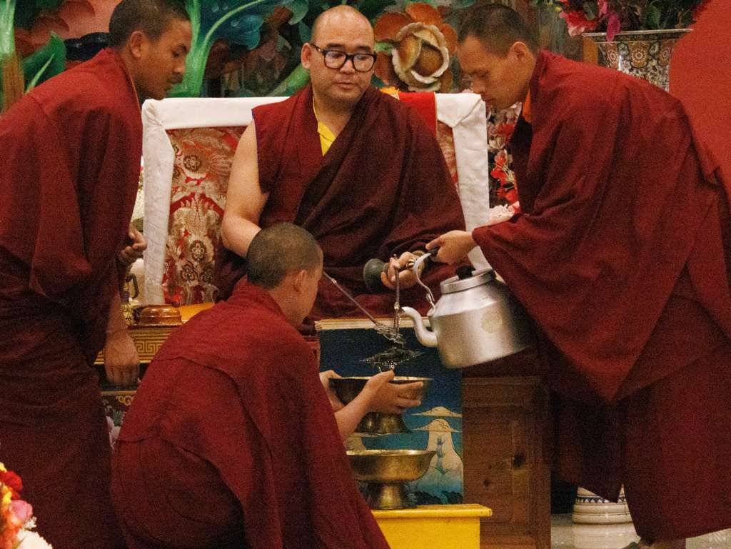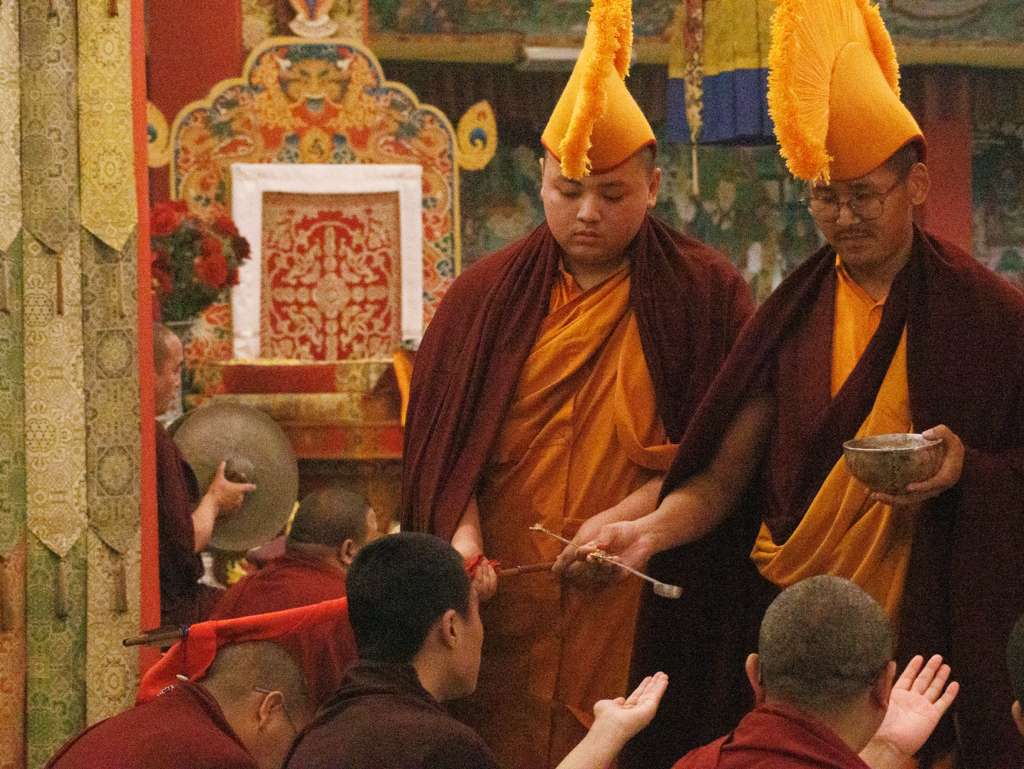 Der Segen der Linie war deutlich spürbar, als die diesjährige Praxis von Kyabje Minling Dungse Rinpoche, dem 13. Thronhalter von Mindrolling, geleitet wurde, der seinen Platz auf dem Thron einnahm. Dieser äußerst glückverheißende Anlass wurde zudem durch die Anwesenheit von Kyabje Minling Jetsün Rinpoche, Kyabje Minling Jetsün Khandro Rinpoche, Kyabje Trulshig Yangsi Rinpoche, dem Dorje Lopön Khentrul Marpa Rinpoche sowie Minling Umdze Lodrö Gyaltsen und vielen weiteren Rinpoches, Tulkus, Khenpos sowie Mönchen, Nonnen und Laienpraktizierenden aus aller Welt gesegnet.
