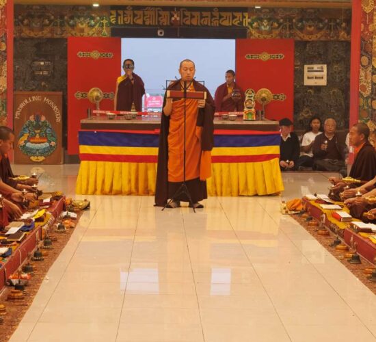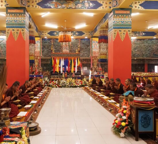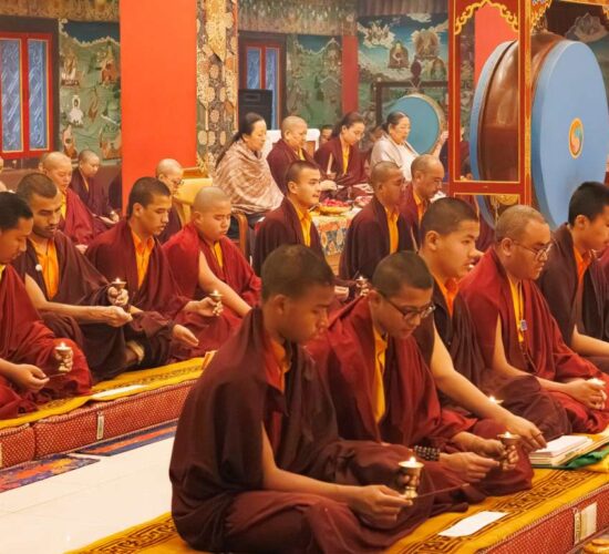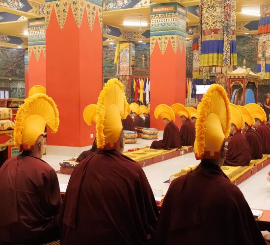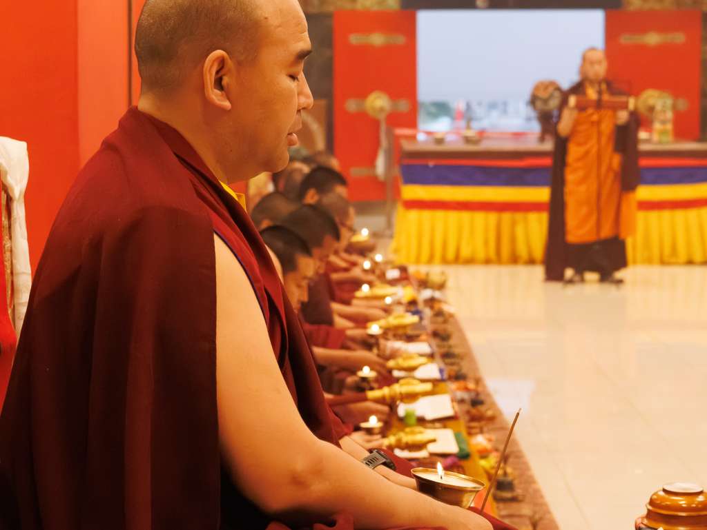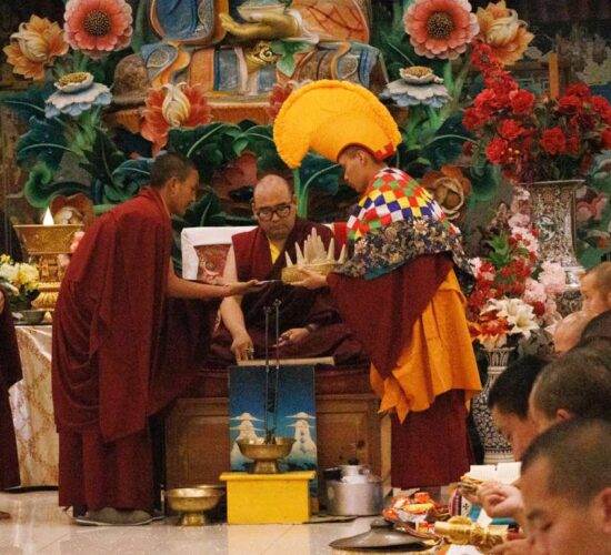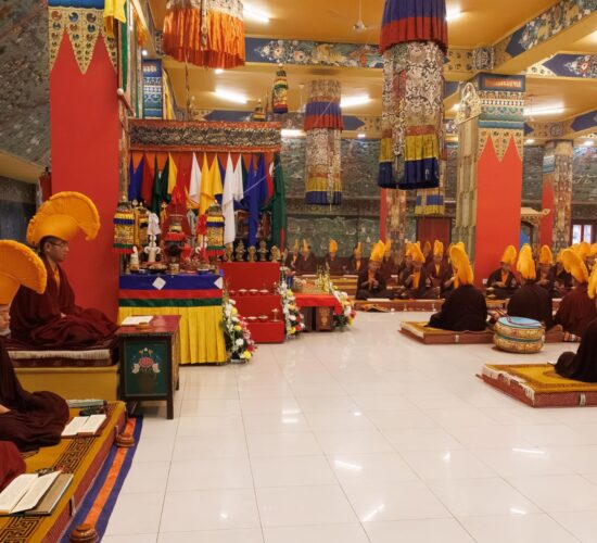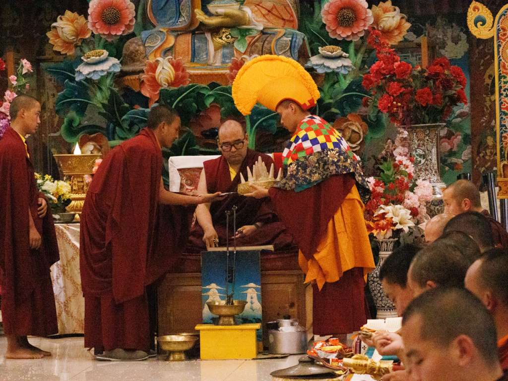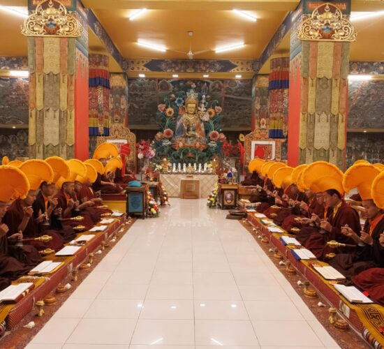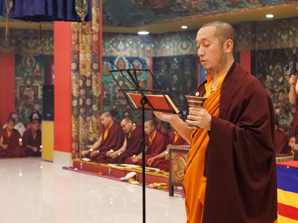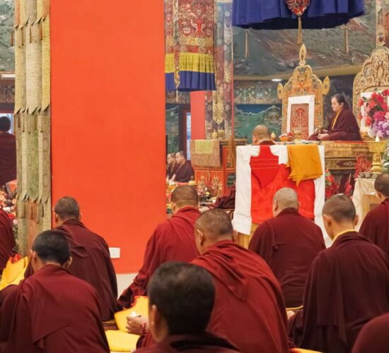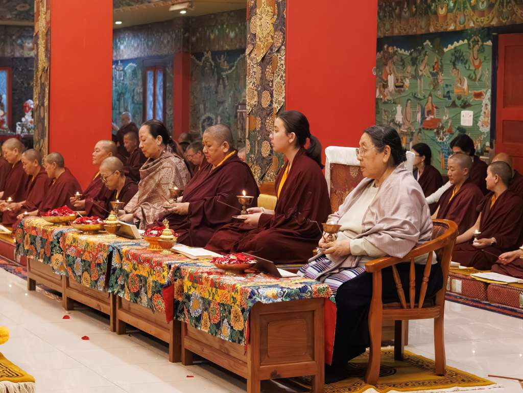 Der Segen der Linie war deutlich spürbar, als die diesjährige Praxis von Kyabje Minling Dungse Rinpoche, dem 13. Thronhalter von Mindrolling, geleitet wurde, der seinen Platz auf dem Thron einnahm. Dieser äußerst glückverheißende Anlass wurde zudem durch die Anwesenheit von Kyabje Minling Jetsün Rinpoche, Kyabje Minling Jetsün Khandro Rinpoche, Kyabje Trulshig Yangsi Rinpoche, dem Dorje Lopön Khentrul Marpa Rinpoche sowie Minling Umdze Lodrö Gyaltsen und vielen weiteren Rinpoches, Tulkus, Khenpos sowie Mönchen, Nonnen und Laienpraktizierenden aus aller Welt gesegnet.