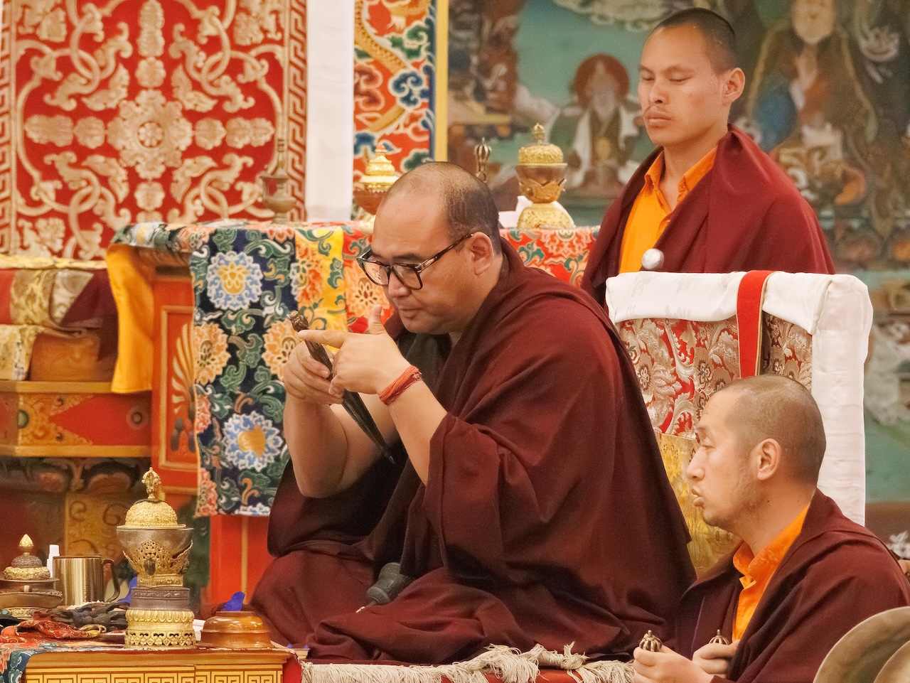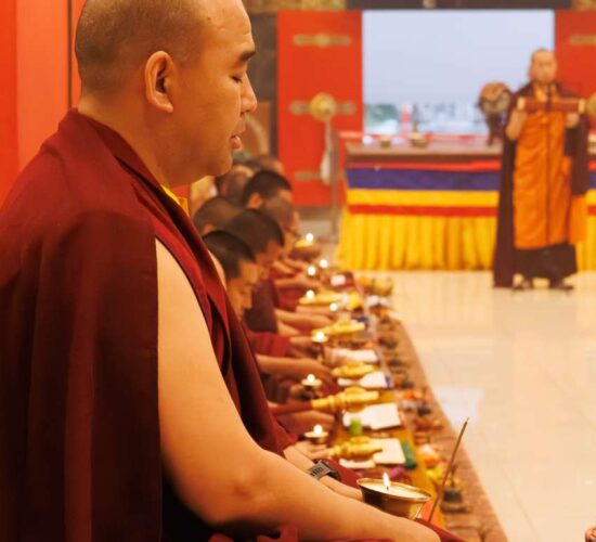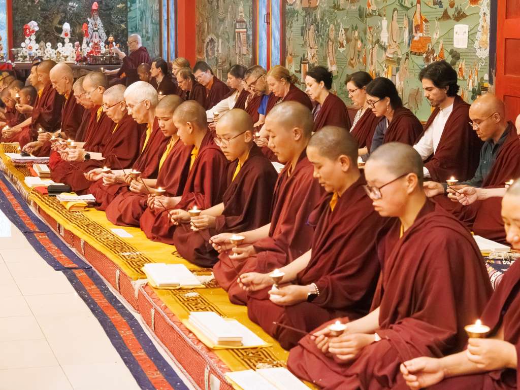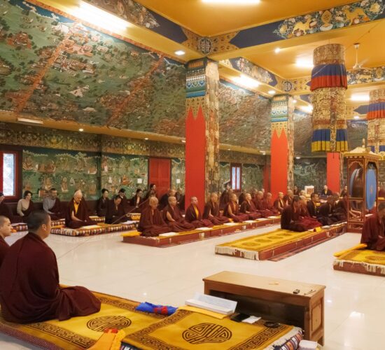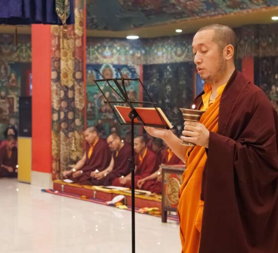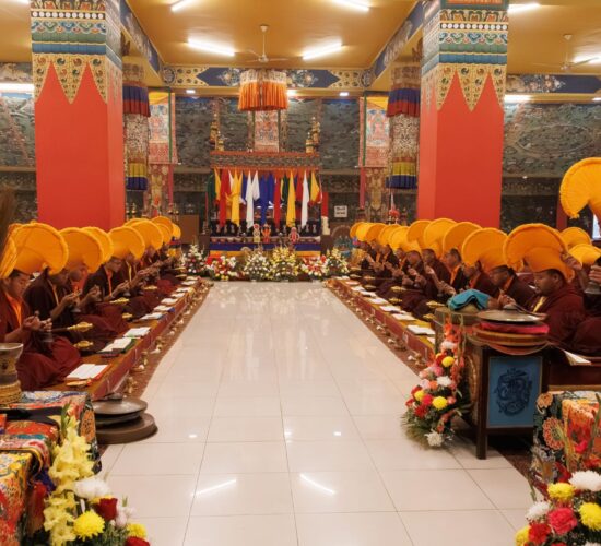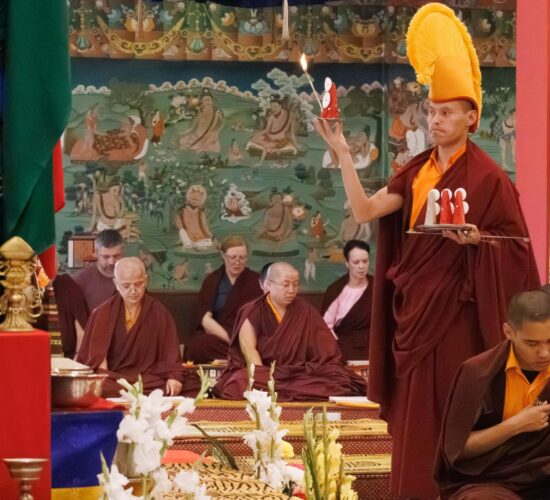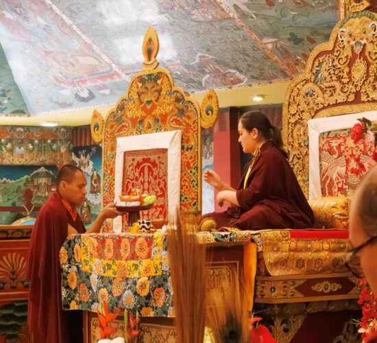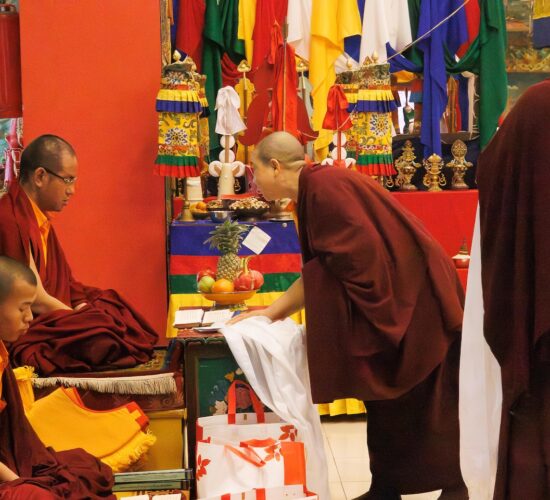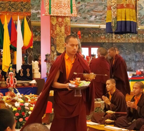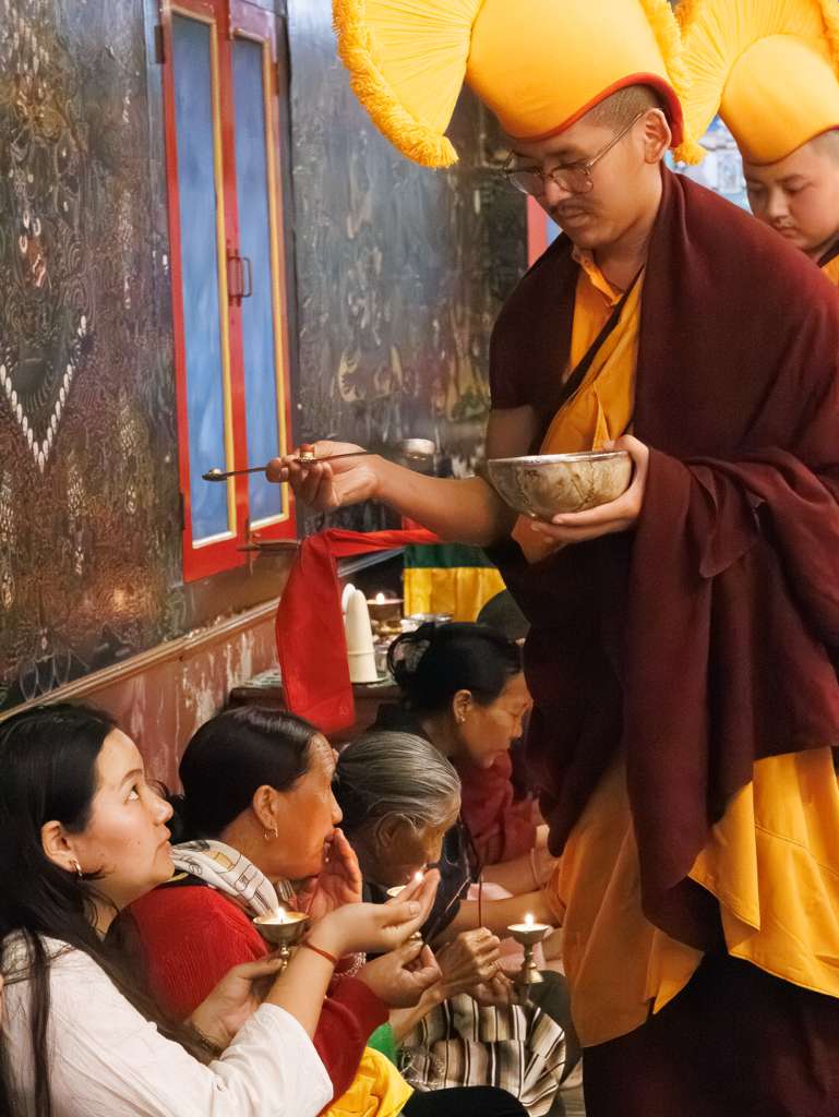 Der Segen der Linie war deutlich spürbar, als die diesjährige Praxis von Kyabje Minling Dungse Rinpoche, dem 13. Thronhalter von Mindrolling, geleitet wurde, der seinen Platz auf dem Thron einnahm. Dieser äußerst glückverheißende Anlass wurde zudem durch die Anwesenheit von Kyabje Minling Jetsün Rinpoche, Kyabje Minling Jetsün Khandro Rinpoche, Kyabje Trulshig Yangsi Rinpoche, dem Dorje Lopön Khentrul Marpa Rinpoche sowie Minling Umdze Lodrö Gyaltsen und vielen weiteren Rinpoches, Tulkus, Khenpos sowie Mönchen, Nonnen und Laienpraktizierenden aus aller Welt gesegnet.