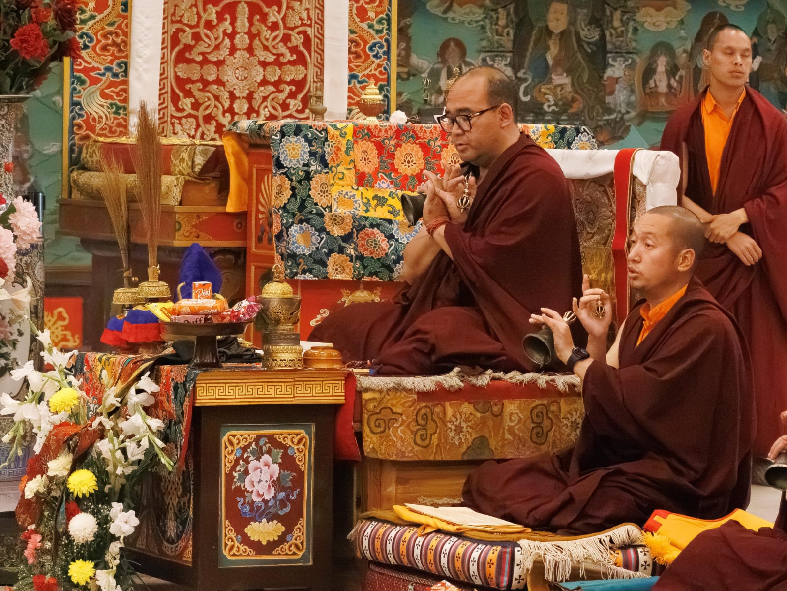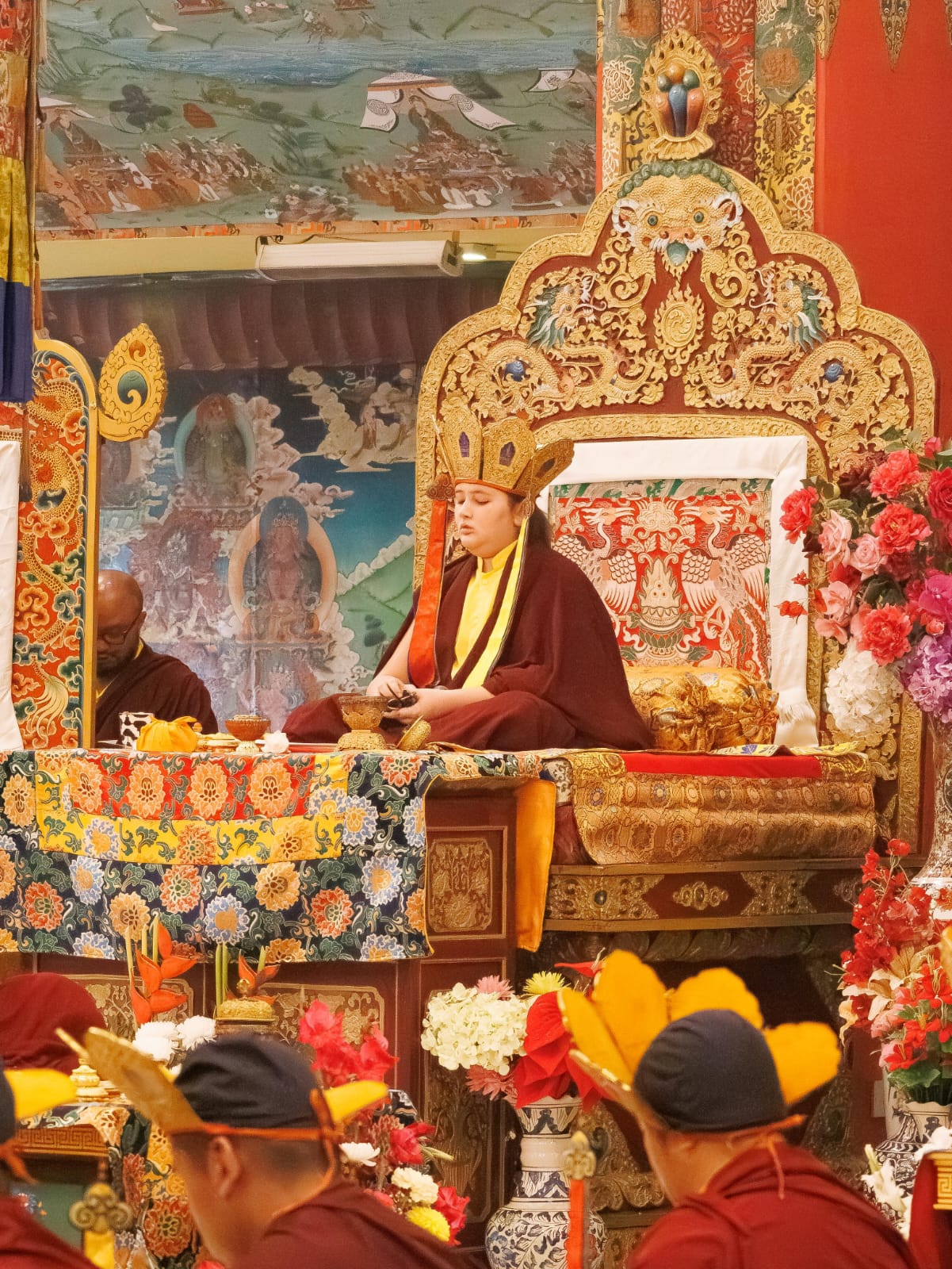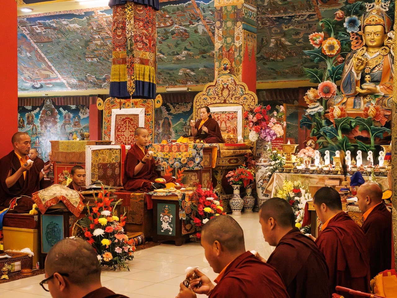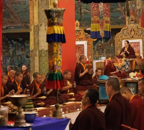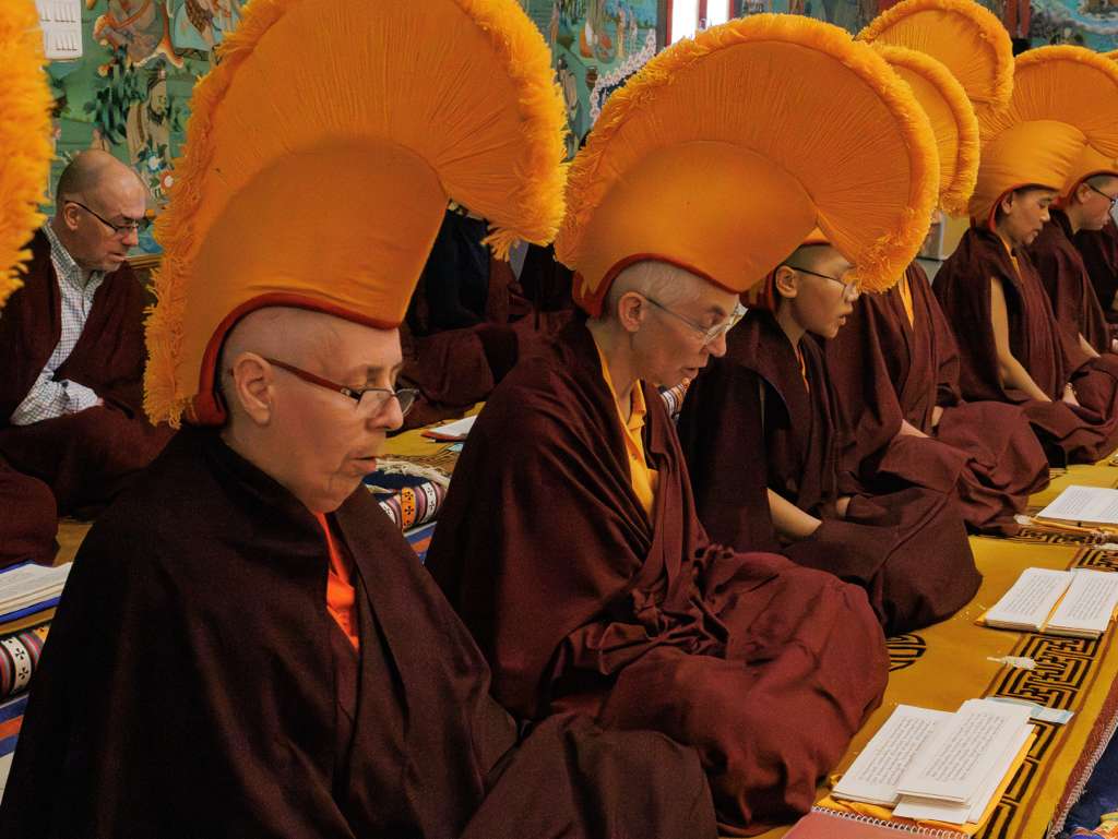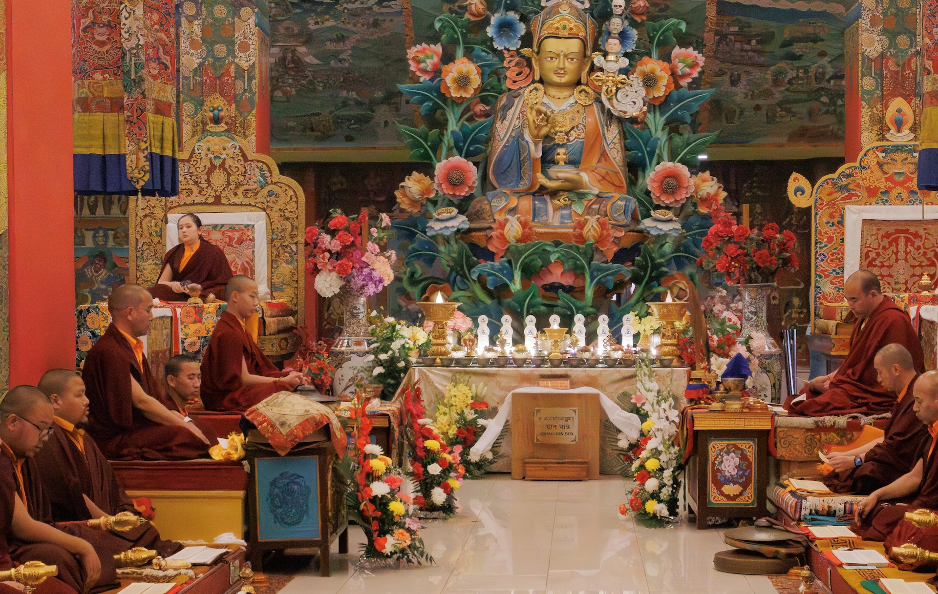 Der Segen der Linie war deutlich spürbar, als die diesjährige Praxis von Kyabje Minling Dungse Rinpoche, dem 13. Thronhalter von Mindrolling, geleitet wurde, der seinen Platz auf dem Thron einnahm. Dieser äußerst glückverheißende Anlass wurde zudem durch die Anwesenheit von Kyabje Minling Jetsün Rinpoche, Kyabje Minling Jetsün Khandro Rinpoche, Kyabje Trulshig Yangsi Rinpoche, dem Dorje Lopön Khentrul Marpa Rinpoche sowie Minling Umdze Lodrö Gyaltsen und vielen weiteren Rinpoches, Tulkus, Khenpos sowie Mönchen, Nonnen und Laienpraktizierenden aus aller Welt gesegnet.