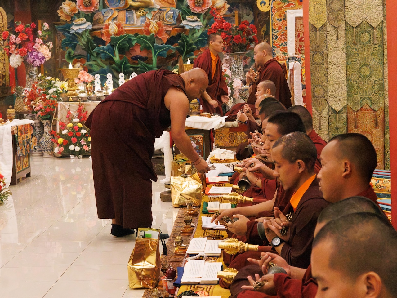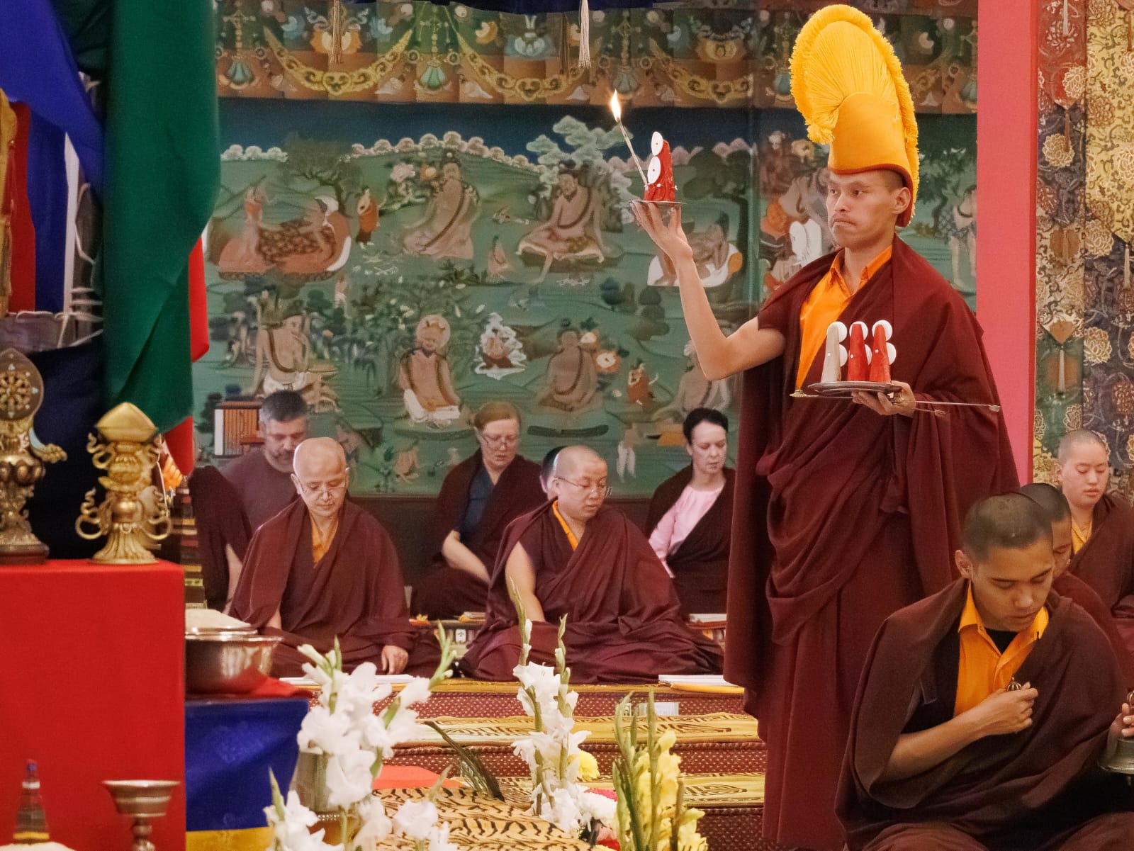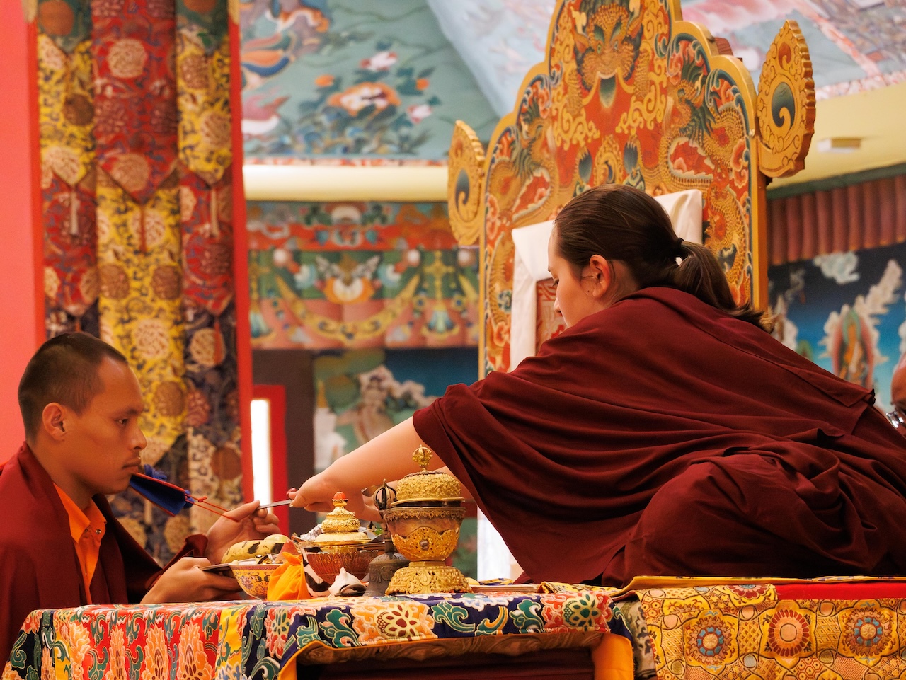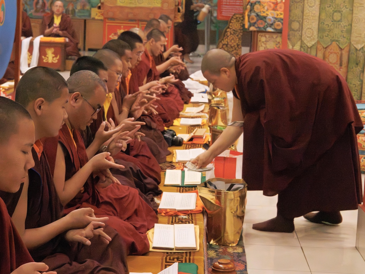 Der Segen der Linie war deutlich spürbar, als die diesjährige Praxis von Kyabje Minling Dungse Rinpoche, dem 13. Thronhalter von Mindrolling, geleitet wurde, der seinen Platz auf dem Thron einnahm. Dieser äußerst glückverheißende Anlass wurde zudem durch die Anwesenheit von Kyabje Minling Jetsün Rinpoche, Kyabje Minling Jetsün Khandro Rinpoche, Kyabje Trulshig Yangsi Rinpoche, dem Dorje Lopön Khentrul Marpa Rinpoche sowie Minling Umdze Lodrö Gyaltsen und vielen weiteren Rinpoches, Tulkus, Khenpos sowie Mönchen, Nonnen und Laienpraktizierenden aus aller Welt gesegnet.