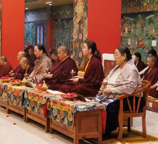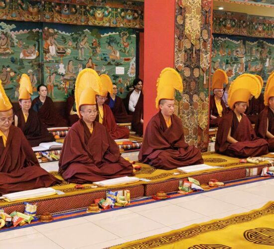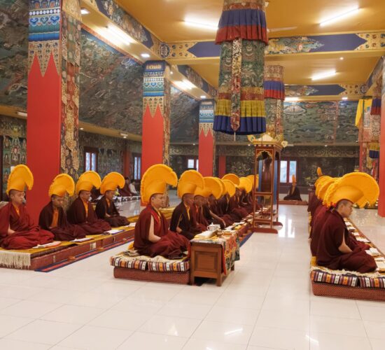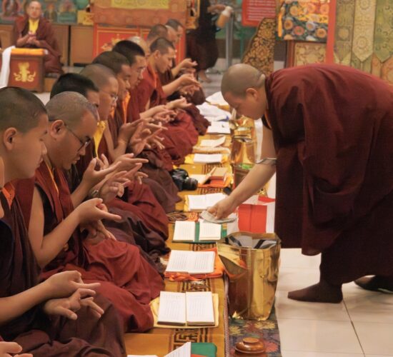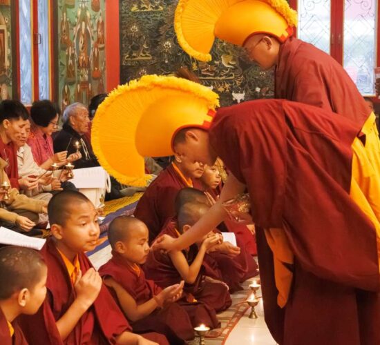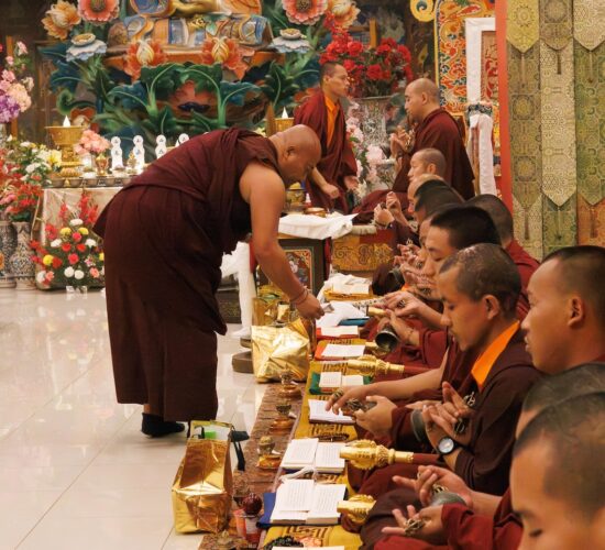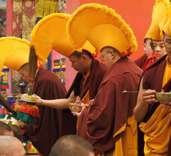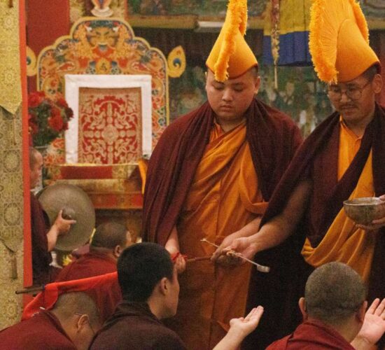 Die gesamte Versammlung war tief inspiriert und erfreut, Zeuge zu sein, wie die neue Generation hervortritt, ihr Training vertieft und größere Verantwortung zum Wohle der fühlenden Wesen übernimmt. Auf diese Weise führt Mindrolling weiterhin die Vision seines Gründers, des großen Chögyal Terdag Lingpa, fort, ein Zentrum des Studiums zu sein, das den heiligen Dharma im Allgemeinen und die authentischen Vajrayana-Rituale im Besonderen lebendig hält und bewahrt.