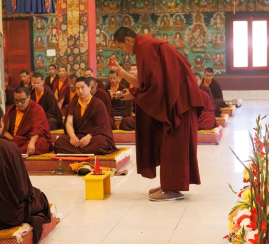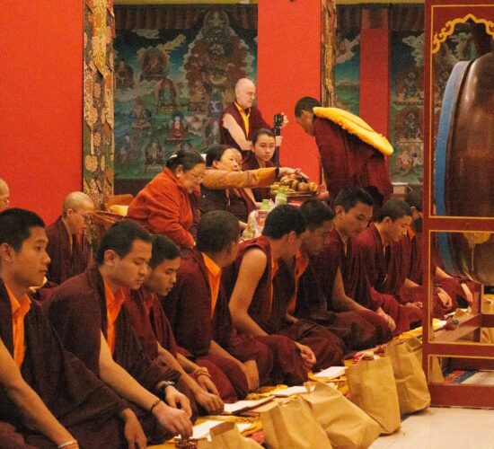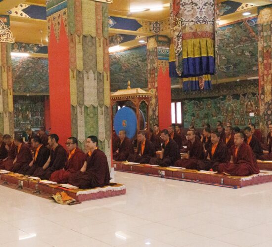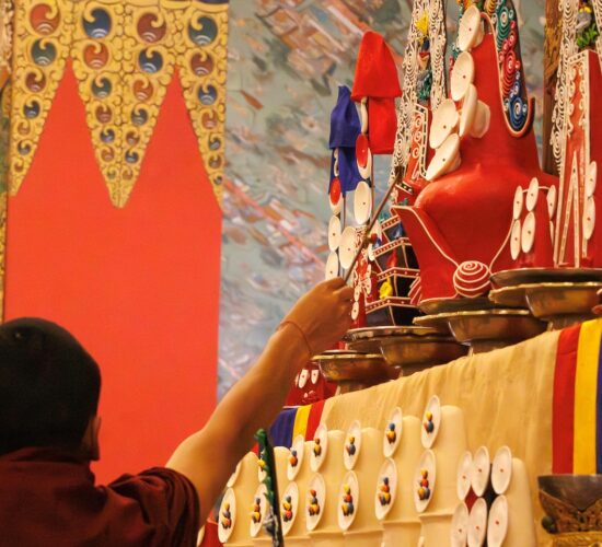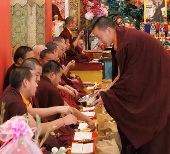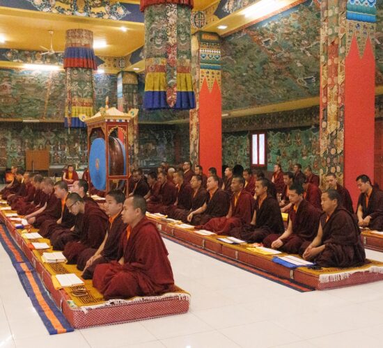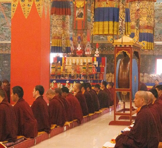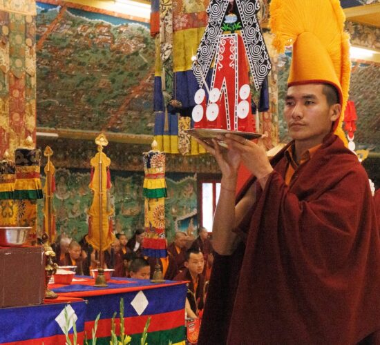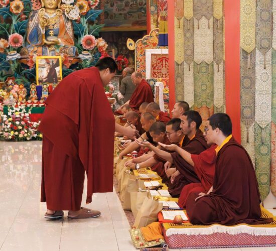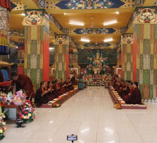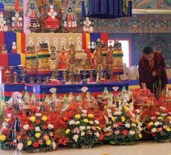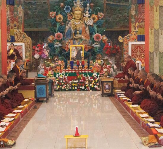 Am dritten Losartag Tag des Feuer-Pferd-Jahres 2026 versammelte sich die Mindrolling-Sangha, um ein umfangreiches Ganachakra (Festopfergaben) darzubringen und so den Jahrestag des Parinirvana von Kyabje Minling Trichen zu würdigen.
