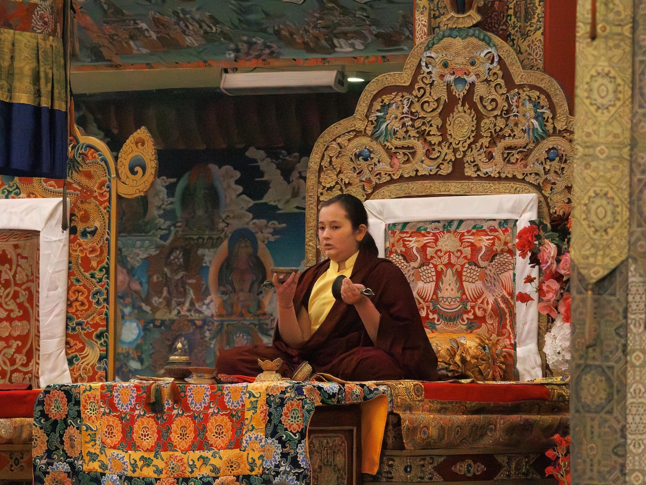An diesem glückverheißenden Tag, an dem sich die gesamte Mindrolling-Sangha versammelte und Kyabje Minling Dungse Rinpoche seinen Sitz von Mindrolling einnahm, war der Segen der Linie von Vergangenheit, Gegenwart und Zukunft für alle deutlich spürbar.