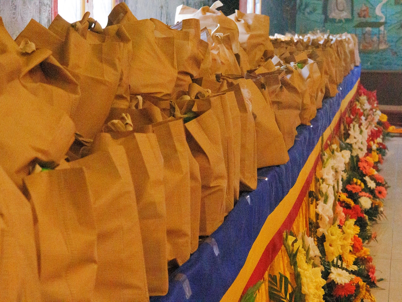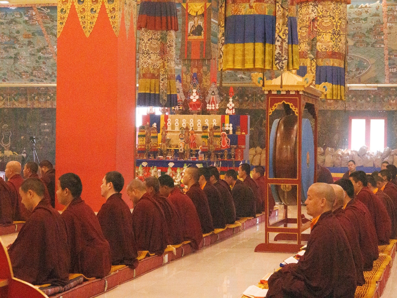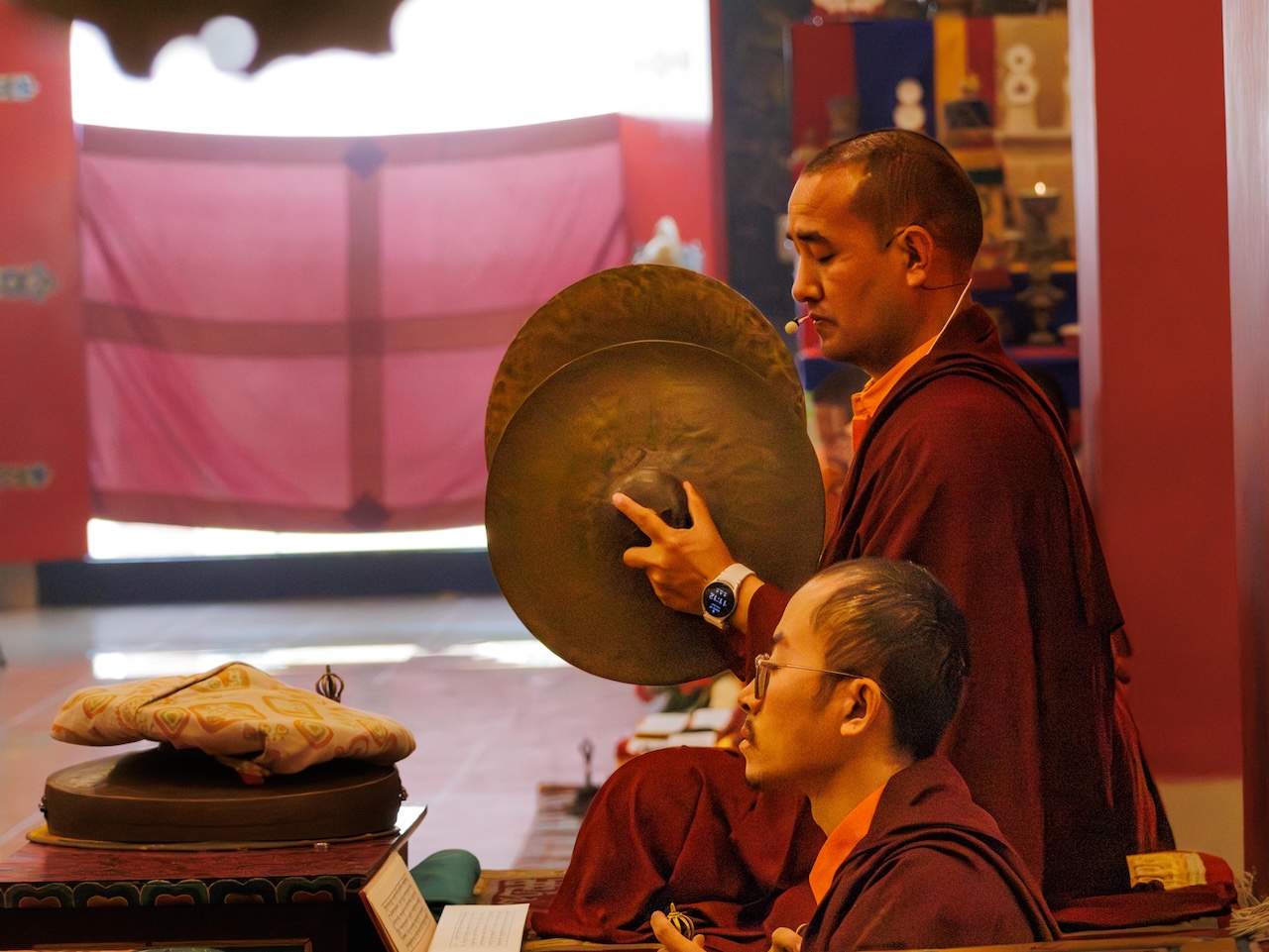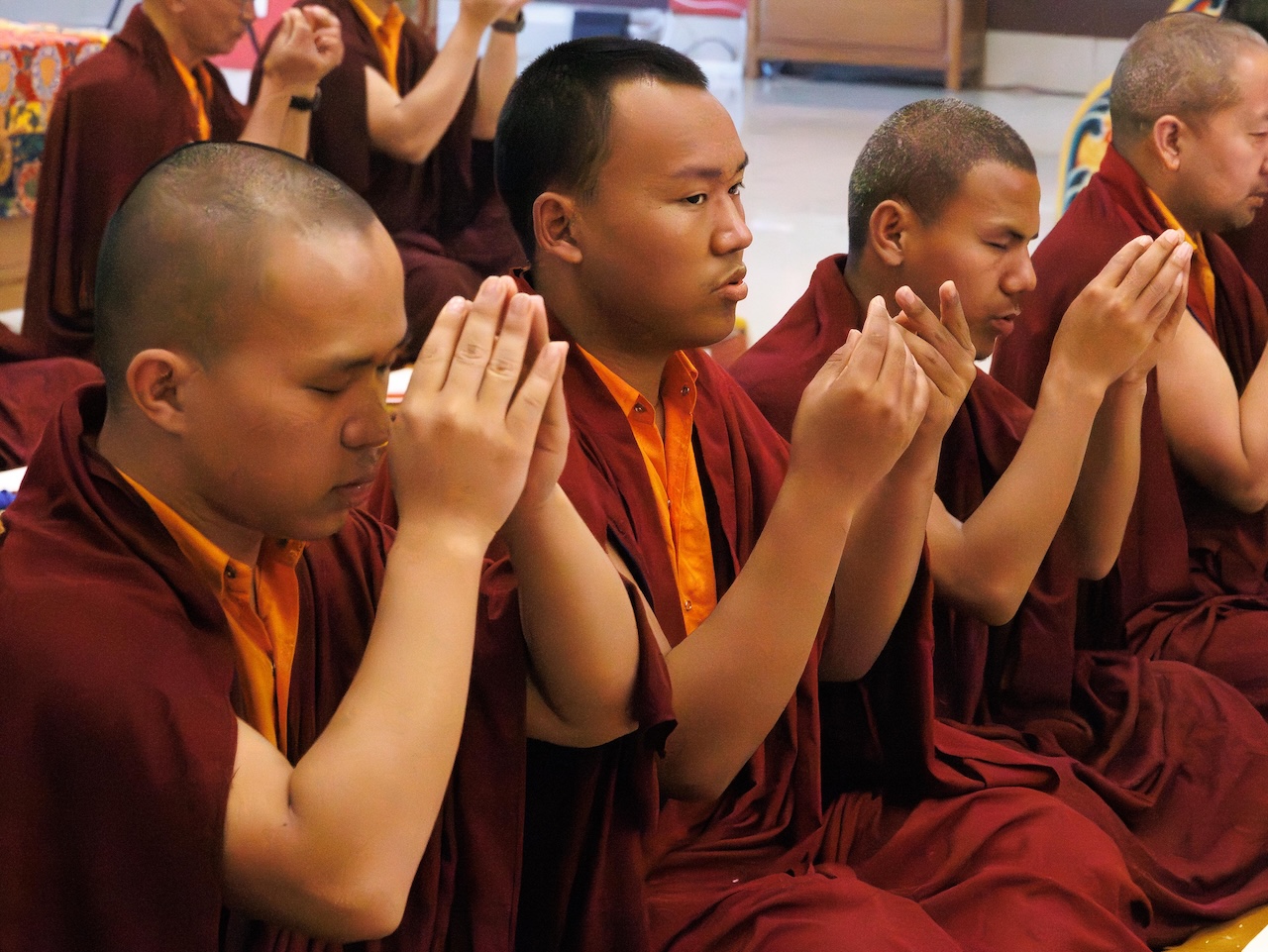 Viele weitere Sangha-Mitglieder, die nicht persönlich anwesend sein konnten, nahmen über einen Livestream Online an der Praxis teil. Die gesamte Versammlung vereinte sich in großer Hingabe, um das umfangreiche Ganachakra durchzuführen.